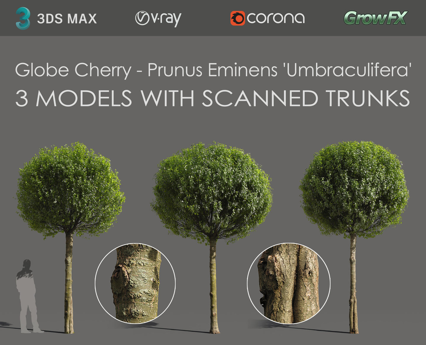 I have recently made very realistic 3D models of Globe Cherry - Prunus Eminens 'Umbraculifera' with scanned trunks.